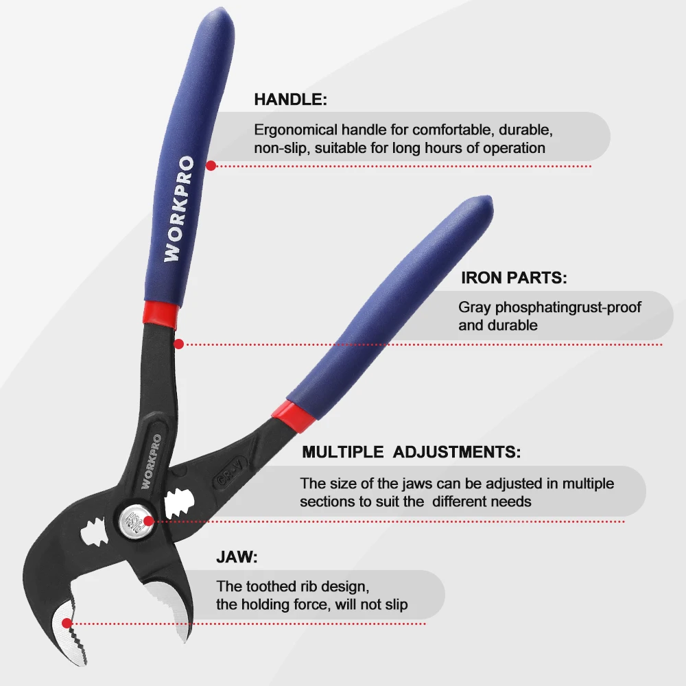 Кусачки для водяного насоса WORKPRO, многофункциональные быстросъемные плоскогубцы с прямыми губками, 2 шт.