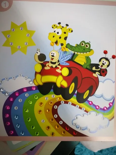 Очень красивый и оригинальный. Он красивый, как только закончился. Слишком плохо, что вы не можете выбрать рисунки. Самое плохое в том, что все стразы крепятся на одну и ту же клейкую ленту, и я должен помочь моей дочери 3 года разрезать их, для девочек 5 или 6 лет проблем не возникнет. Идеально подходит для занятий мелкой psychomotricity и ввода их в бриллиантовую картину