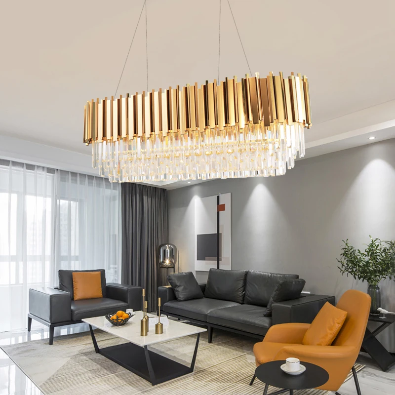 Современная хрустальная люстра Manggic для гостиной, овальная Роскошная золотая круглая люстра из нержавеющей стали, освещение