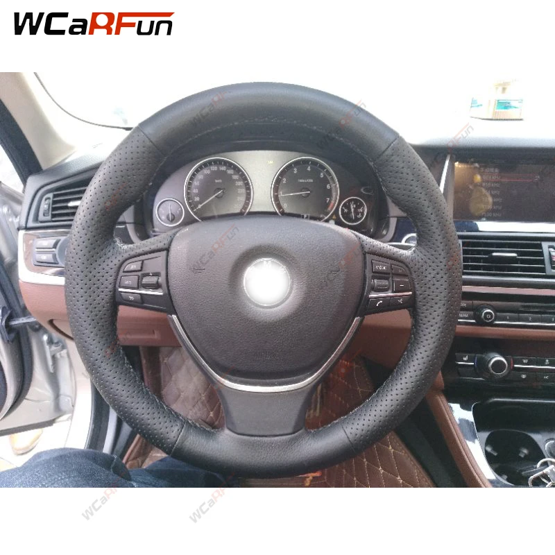 WCaRFun черный чехол рулевого колеса автомобиля из натуральной кожи для BMW 520i 528i 2013 2014 F10 2014 730Li 740Li 750Li
