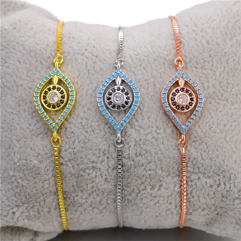 1.Ali Moda дропшиппинг новый дизайн браслеты для женщин золото/розовое золото/серебро турецкий глаз сглаза очаровательные браслеты Золотые Регулируемые Цепочки Браслеты
