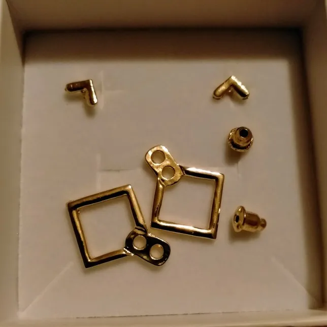 Доставка заняла ровно месяц. Упаковка хорошая: каждая серёжка в отдельном пакетике, и всё это в коробочках. Заказала 4 пары, положили пятую в подарок, только я пока не разобралась, как собрать этот конструктор Заказом очень довольна, всё примерила – идеально! Позже добавлю фото в действии