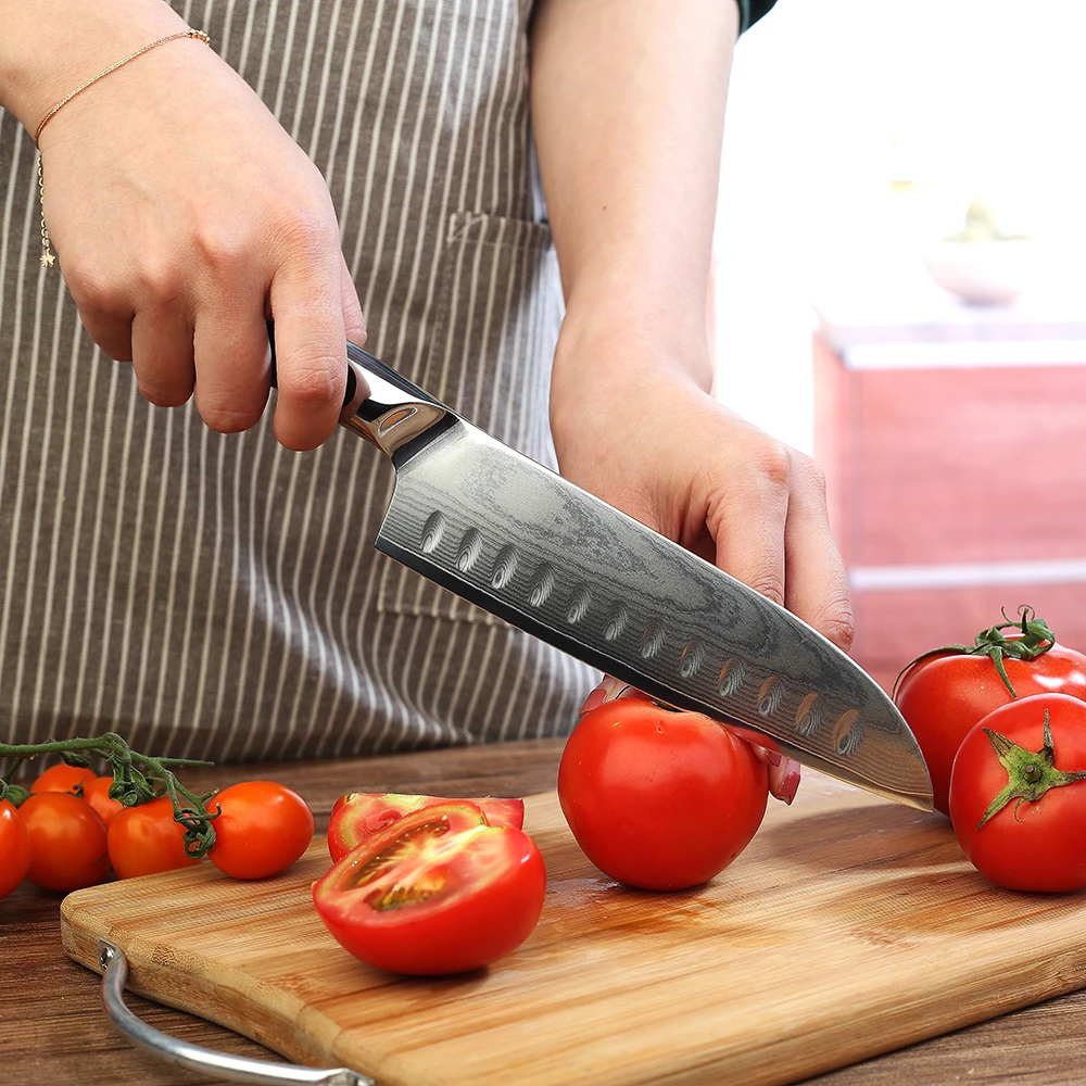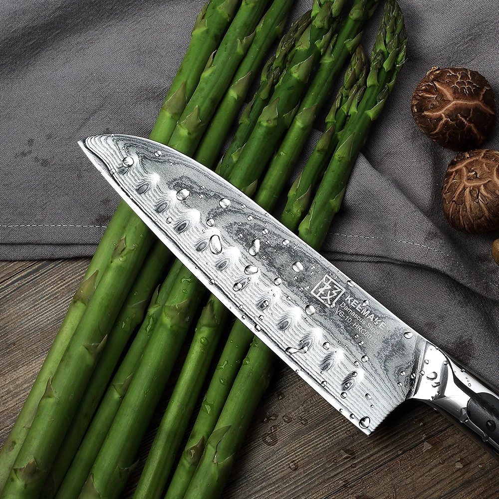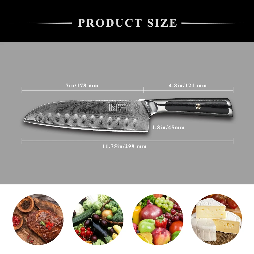 Keemake 7-дюймовый нож шеф-повара Santoku, кухонные ножи из японской дамасской стали VG10, острое лезвие, Ручка G10, резак, инструменты для мяса