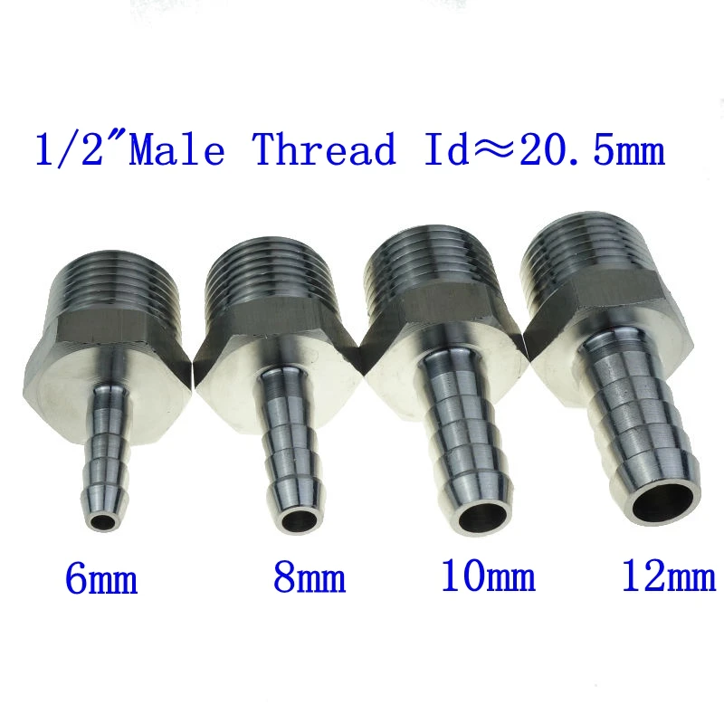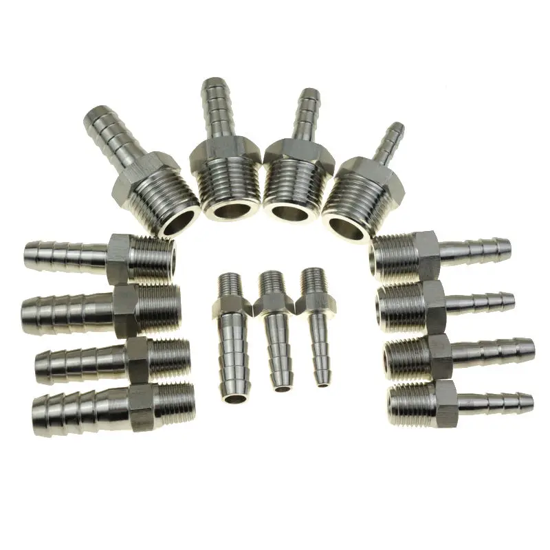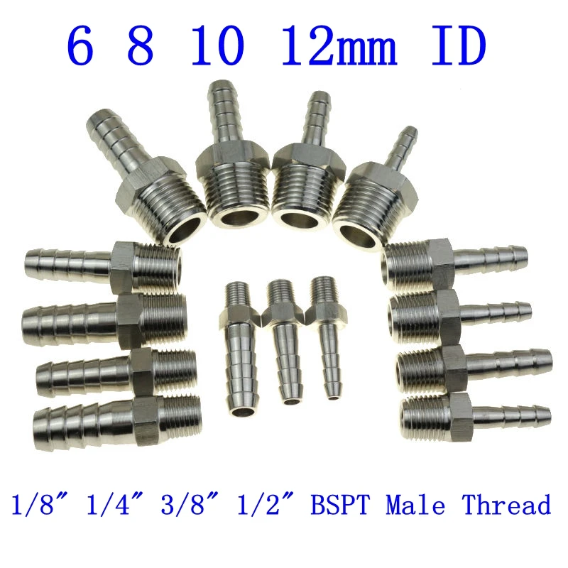 SS 304 баршток 18 "14" 38 "12" BSPT мужской фитинг для труб x 6 8 10 12 мм ID Барб шланг хвостовой наконечник штуцер мульти размер