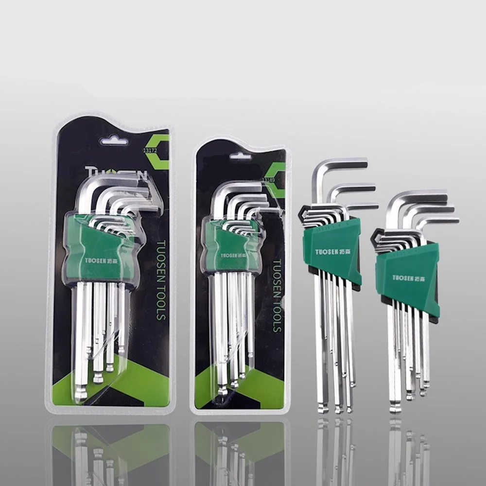 TUOSEN Набор шестигранных ключей, 9 шт., Cr-V, сталь, L-образный шестигранный ключ, инструменты для ремонта, мощный шестигранный ключ с шаровой головкой