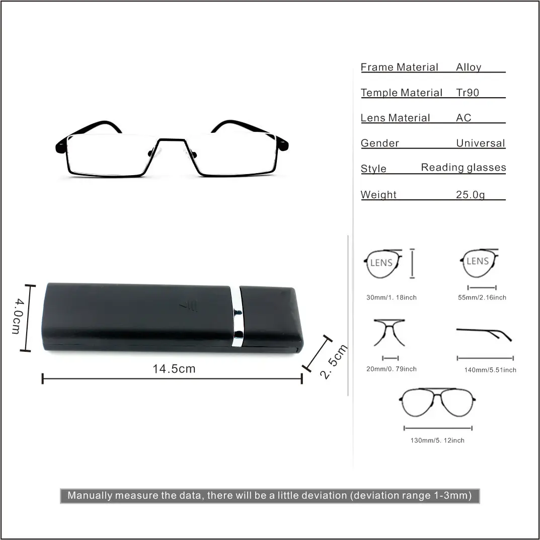TR90 Wo Для мужчин s с плоскими стеклами и половинной рамкой для чтения очки для чтения для Для мужчин Металл увеличительные очки для работы мужской чехол