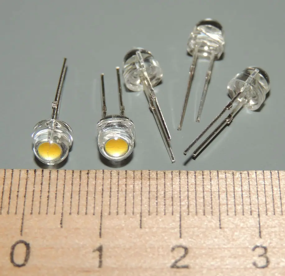 кристалл большой при 10 мА светит ярко , качество теплобелого света на 3,5 угол свечения очень широкий , цена качество на 5
