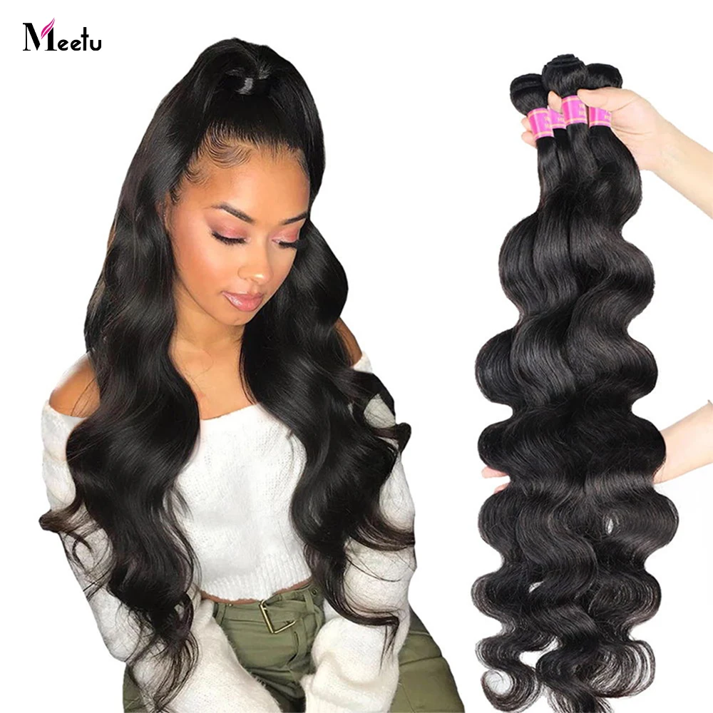 Meetu малазийские волнистые пряди человеческих волос пряди натурального цвета 10 А, волосы Remy, пупряди для наращивания волос, 4 пряди