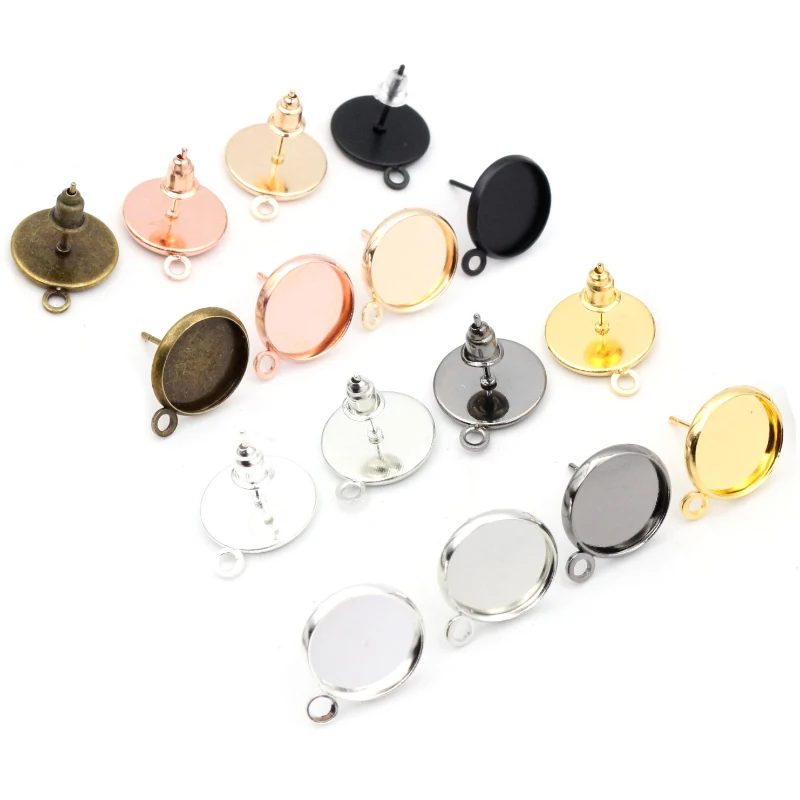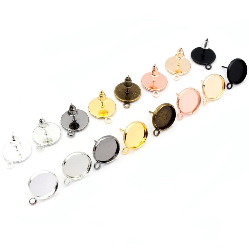 12 мм 30 шт Родиевые Brone Позолоченные сережки из нержавеющей стали с серебряным покрытием (с заглушкой) основание, подходит для стеклянных кабошонов 12 мм