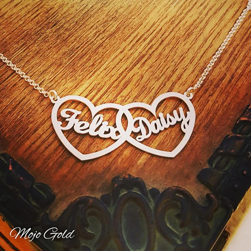 name 1Stainless Steel Gold Chain For Men Lariat Double Heart Necklace Women