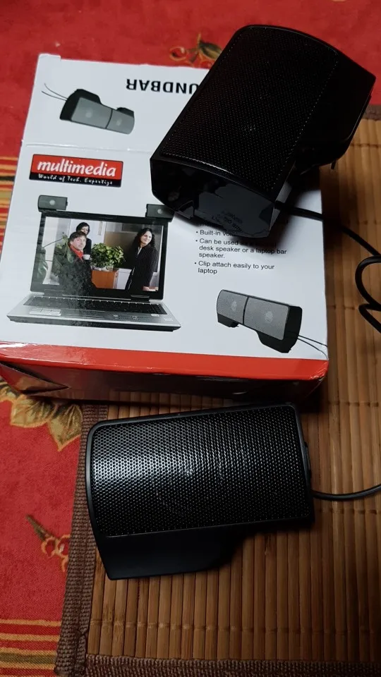 Колонки пришли быстро, хорошо упакованные, без повреждений. В описании было сказано о встроенном микрофоне, но такового я не обнаружил. После закрепления на 24-дюймовом мониторе кабеля для подсоединения остается ок. 50 см - достаточно для ноута, но мало для компа. Звука достаточно, если вы не хотите конфликтовать с соседями и близкими. Колонки, магазин, продавца рекомендую