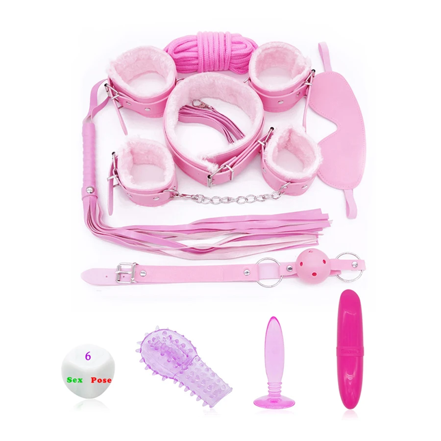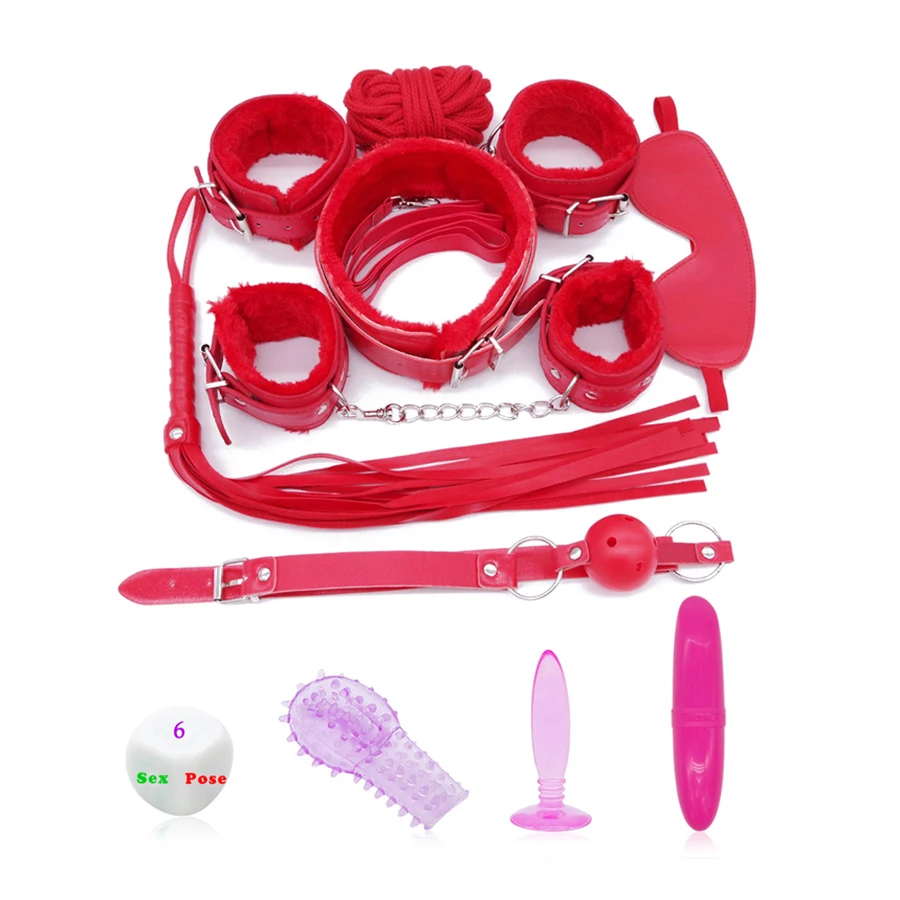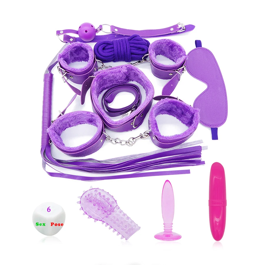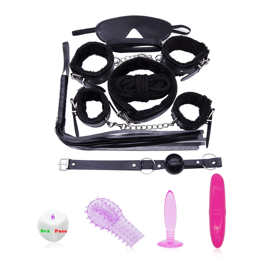 DOMI Набор для бондажа презерватив, кнут, наручники, манжеты для ног, Анальная пробка, вибратор фаллоимитатор для взрослых игра эротическая игрушка Фетиш Секс игрушка (11 шт.)