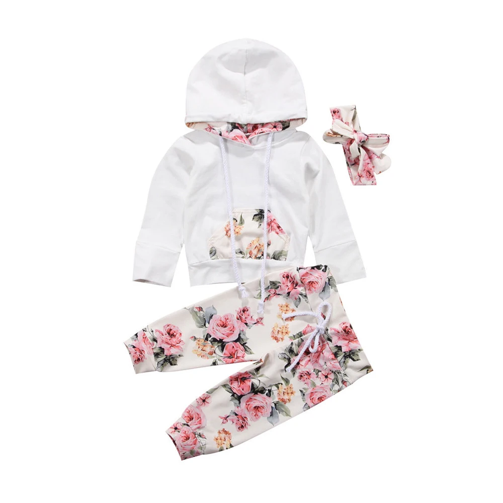 Pudcocoкомплект одежды из 3 предметов с капюшоном для маленьких девочек повседневные хлопковые топы с капюшоном и длинными рукавами + штаны с цветочным принтом для детей 6-24 месяцев