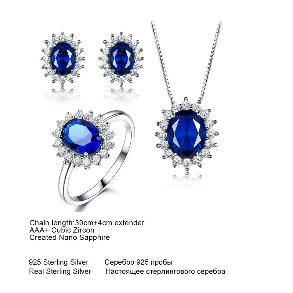 UMCHO, ювелирный набор из стерлингового серебра 925 пробы, нано синее сапфировое кольцо, кулон, серьги-гвоздики для женщин, брендовые ювелирные украшения, высокое качество