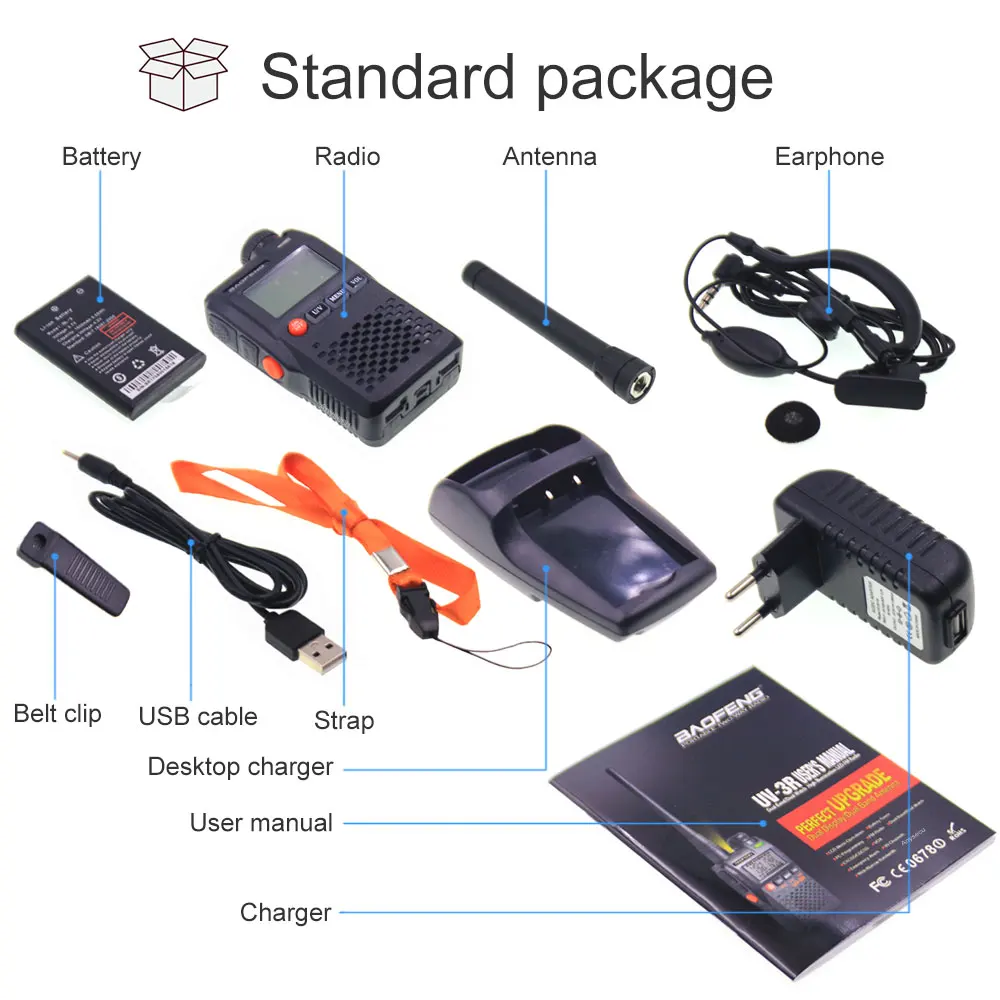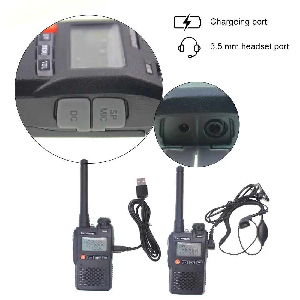 Портативная рация BaoFeng UV-3R UV 136-174 и 400-470 МГц с аккумулятором 1500 мАч UV3R