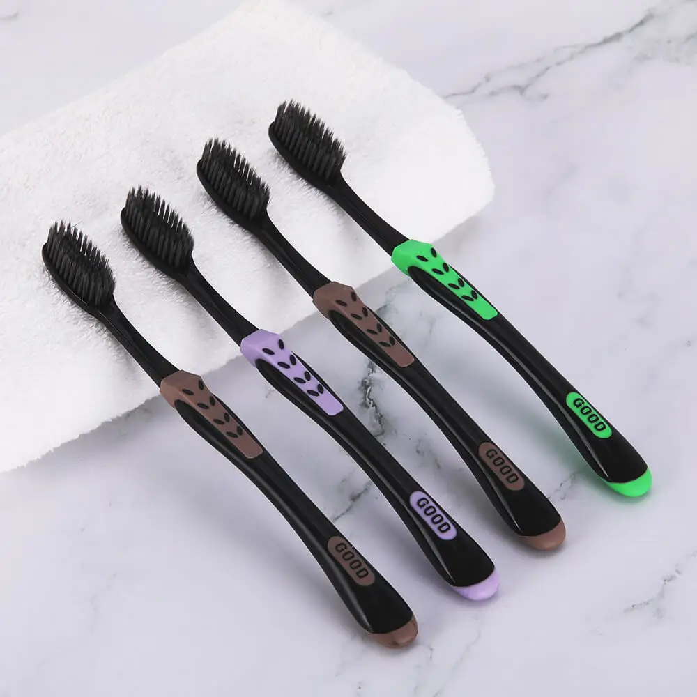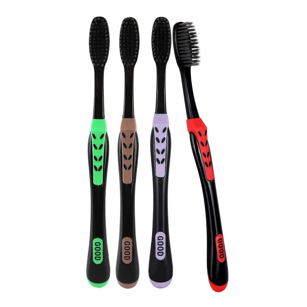 Зубная щетка с бамбуковым углем, 4 шт., двойная Ультрамягкая зубная щетка es с черными насадками, мягкая щетина, нанозубная щетка