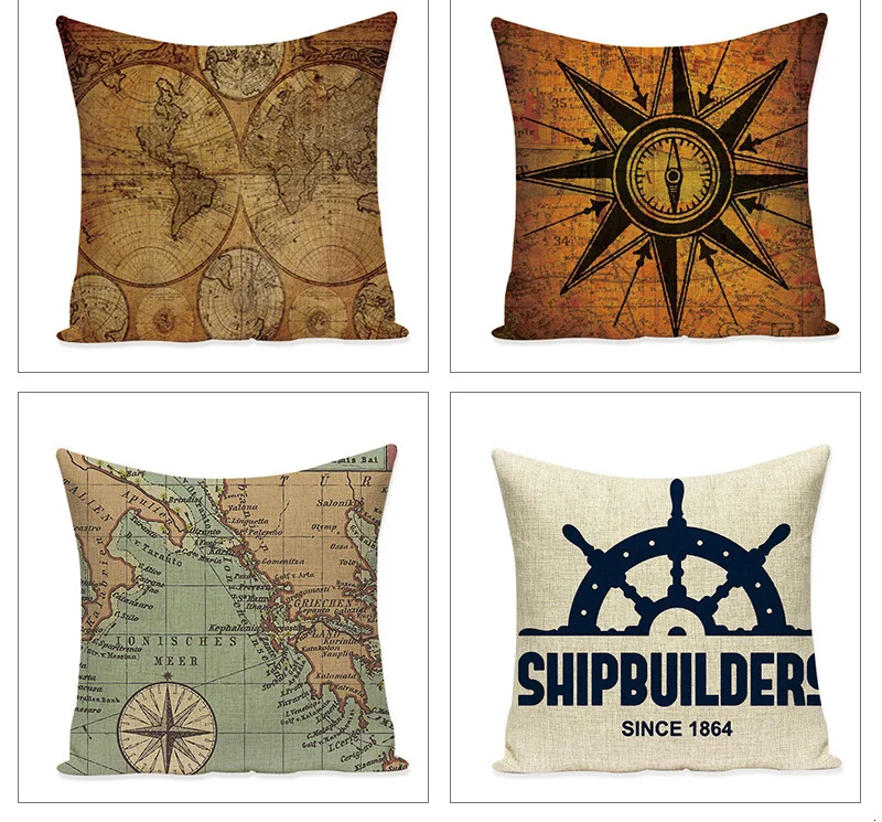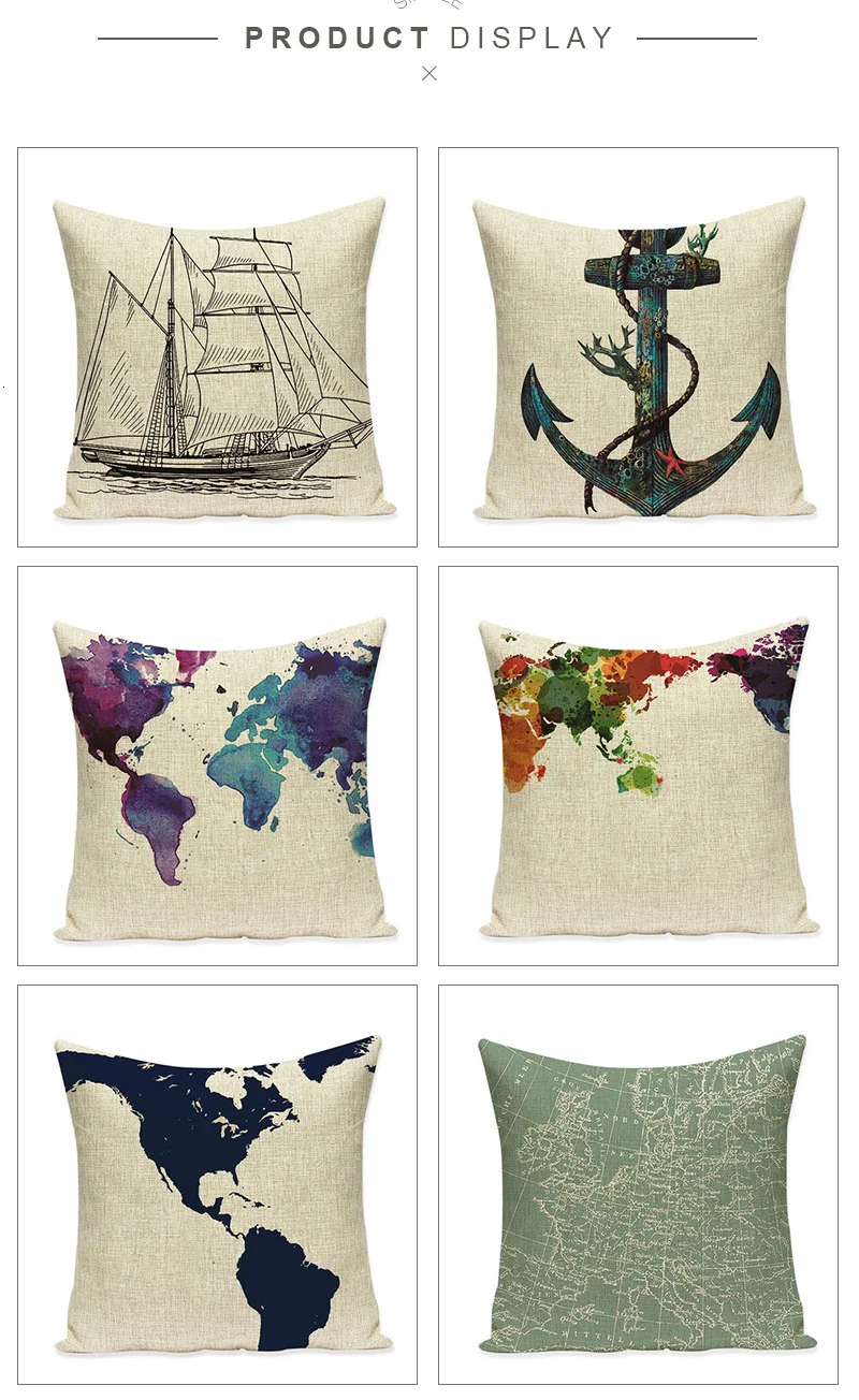 Чехол для подушки с картой мира, Европейский ретро корабль, домашни...