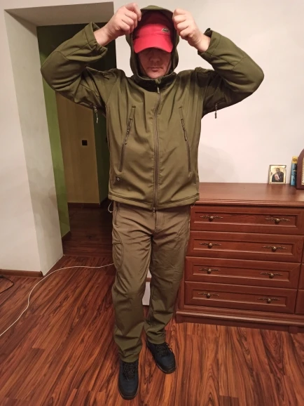 Моя вага 99 кг., зріст 180. На фото костюм XXL одягнений на спортивні термокальсони "в обліпку"і футболку. Під куртку, не в збиток рухливості, замість футболки одягається термобілизна в обліпку, тонка фліска і доволі товста флісова куртка. І при цьому "фарші" на колобка зовсім не скидаєшся)). Як на мене, то при активних рухах, все ж, можна запріти, бо матеріал погано "дихає", але під пахвами є вентиляційні замочки, можливо вони і створять хоч якусь вентиляцію. Матеріал гарно прасується навіть пии високій т-рі з відпарюванням. Що ще додати? росія - недокраїна, а її недокерівник окурок і ХУЙЛО! СЛАВА УКРАЇНІ!