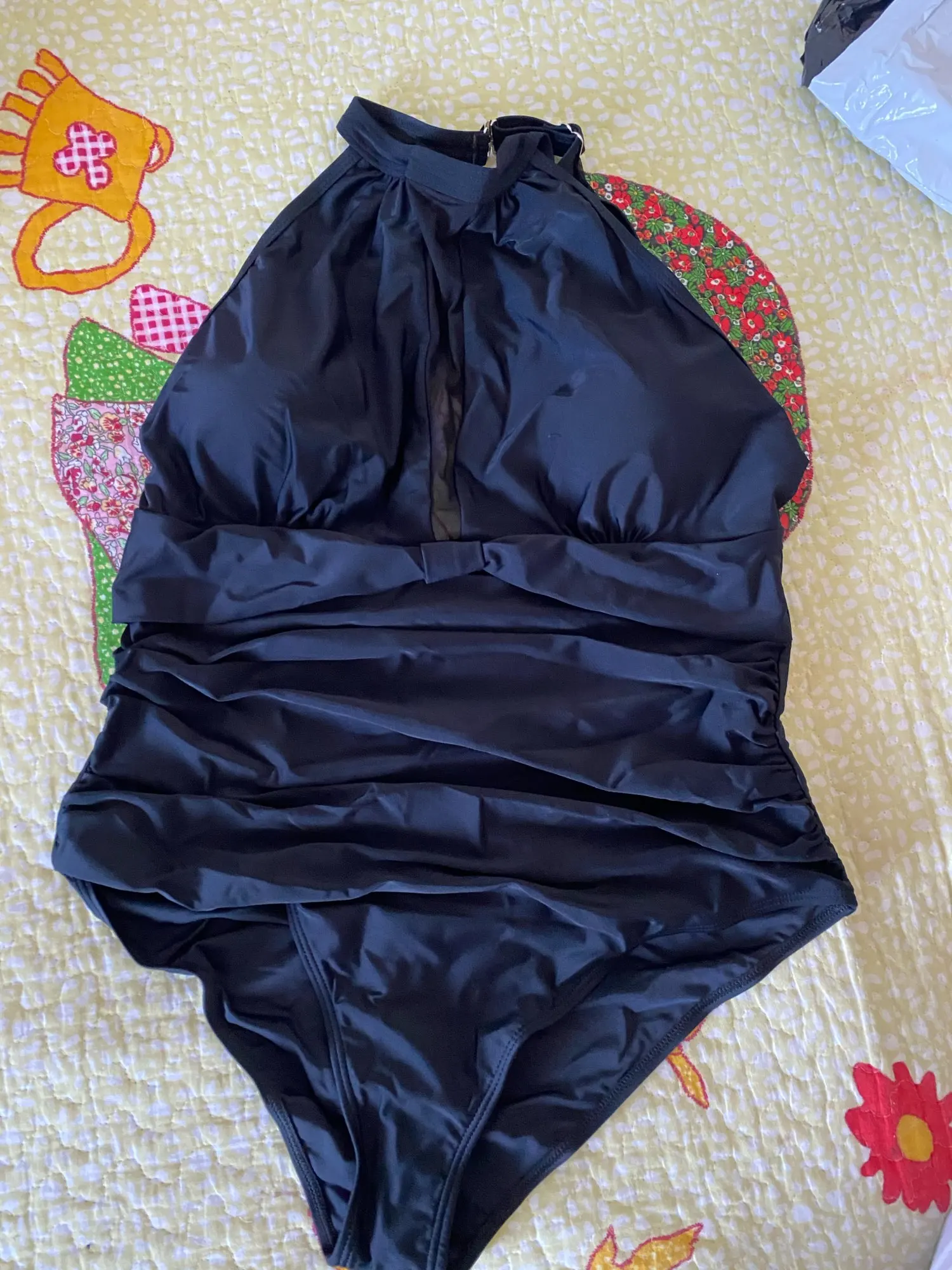 Супер быстрая доставка в Екб. Ткань плотная, садится идеально. Покупаю одежду XL, купальник купила этого же размера, как влитой сел)