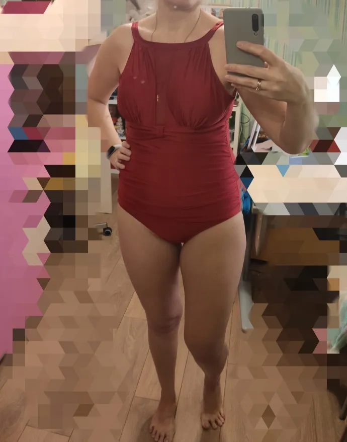 Очень красивый купальник, как на фото, сидит круто, скрывает что надо. Сразу после заказа обратилась к продавцу с просьбой отправить как можно быстрее и получила посылку в точке выдачи через 14 дней! Ткань приятная, на рост 168 подходит, размер L взяла на русский 48-50, осталась очень довольна! большое спасибо
