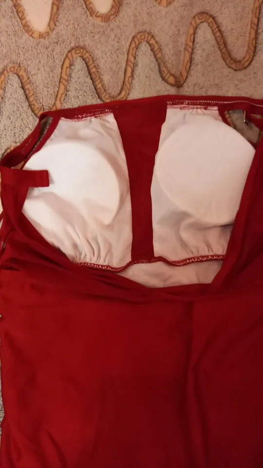 купальник смотрится довольно эффектно, только как будто нижняя половина идёт на больший размер, а верхняя на меньший ( в животе прям свободно, а застёжка наверху слегка поддавливает)