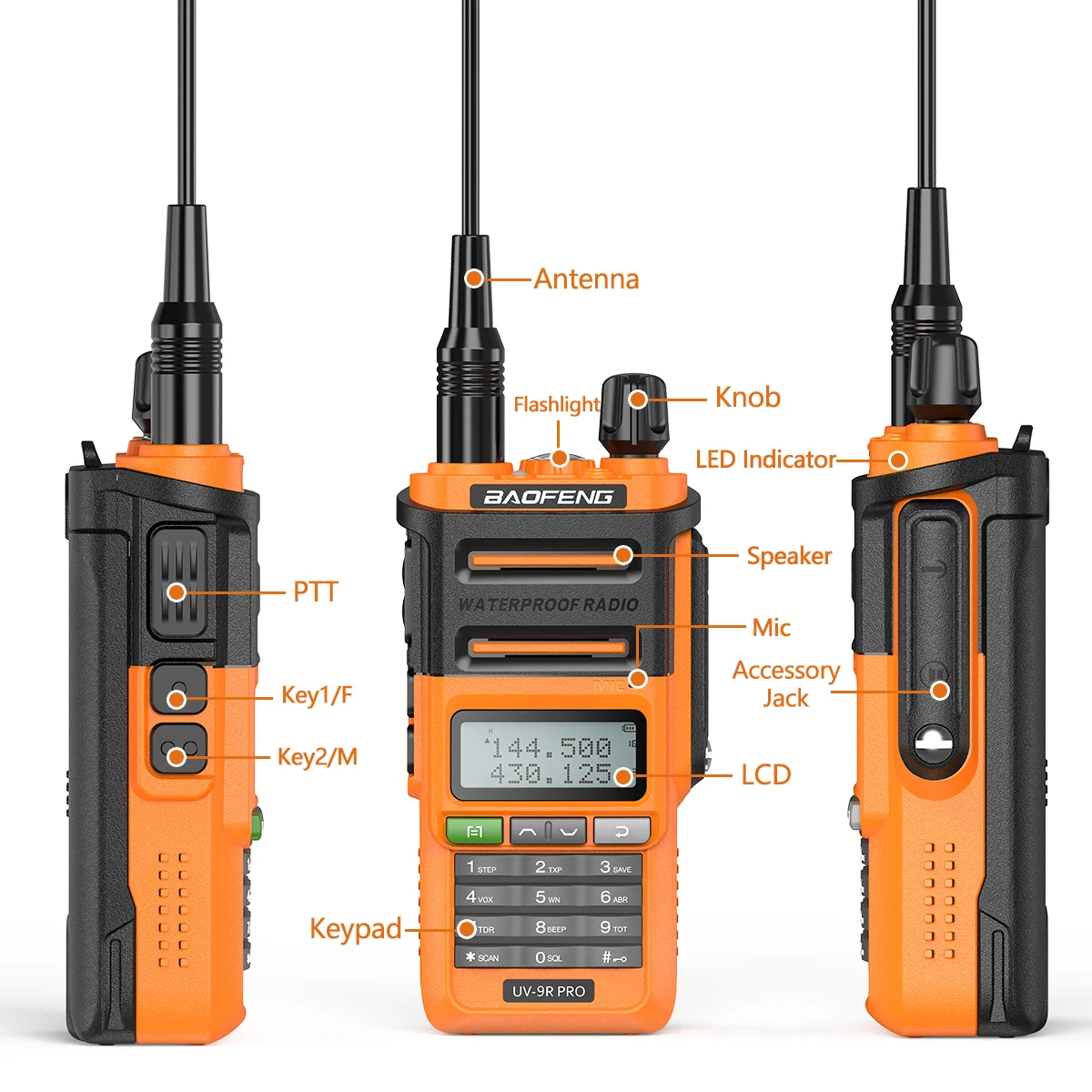 Портативная рация Baofeng UV-9R Plus, водонепроницаемая двухсторонняя радиостанция с дальностью 10 км, IP68