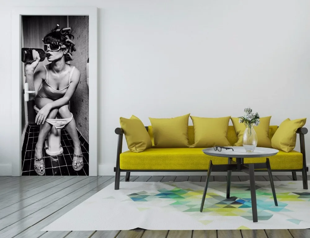 3D девушка пьет в WC стены искусства двери Настенные обои фотообои настенный принт наклейка стены деко Настенная роспись фото самоклеящаяся дверь пленка