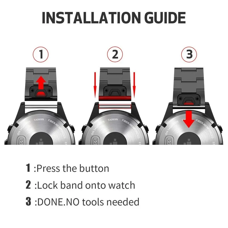 -Ремешок можно установить на часы Garmin (не входят в комплект) на обоих концах точно и надежно. Простая и прямая установка и удаление.