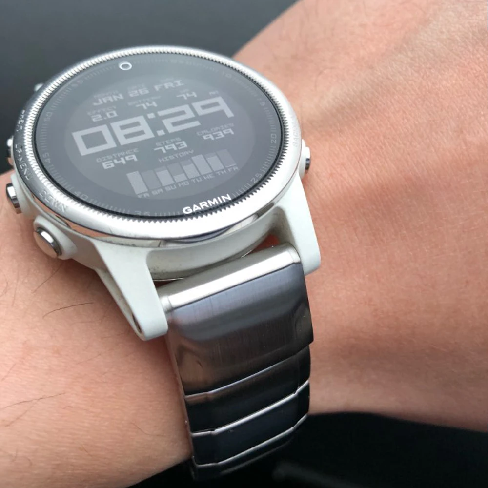 -- Не подходит 22 мм Fenix 5/5 Plus, Fenix 6 или 26 мм Fenix 5X/Fenix 5X Plus, Fenix 6X. Пожалуйста, проверьте обратную сторону ваших часов Garmin, это ясно показывает модель.