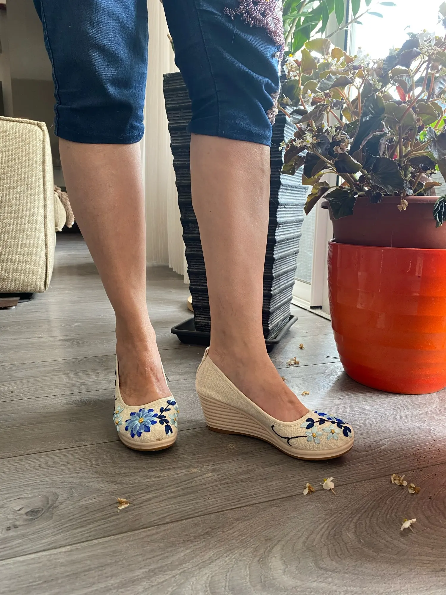 Название бренда: VeowalkМатериал верха: хлопковая тканьМатериал стельки: ленМатериал подошвы: РезинаМодный элемент: вышивкаВысота каблука: 6 смРазмер: 35 36 37 38 39 40