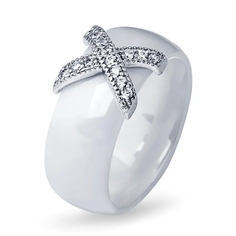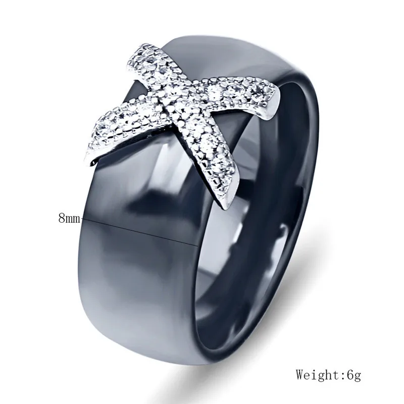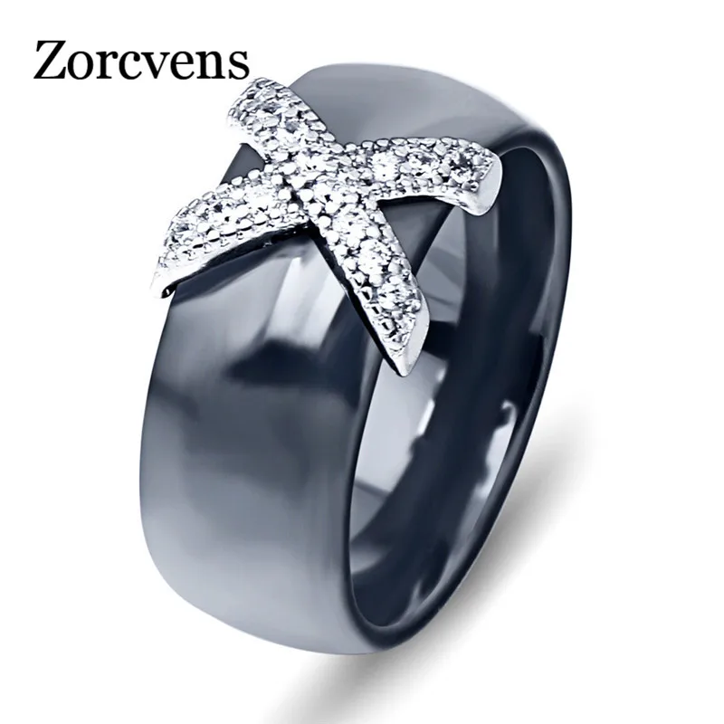 Новинка 2022, модные ювелирные изделия zorcins, Женское кольцо с кристаллом ААА, керамические обручальные кольца с крестом 8 мм для женщин