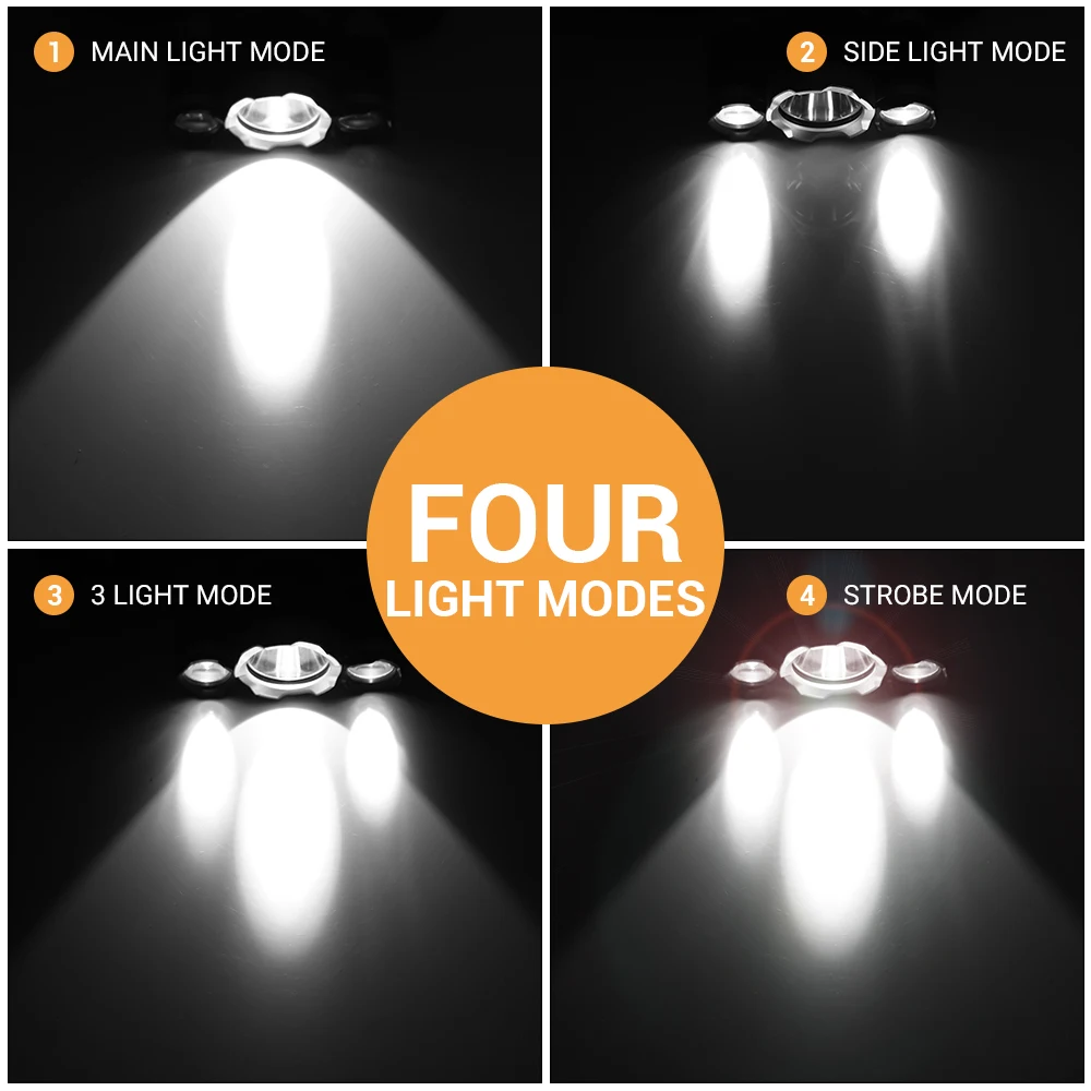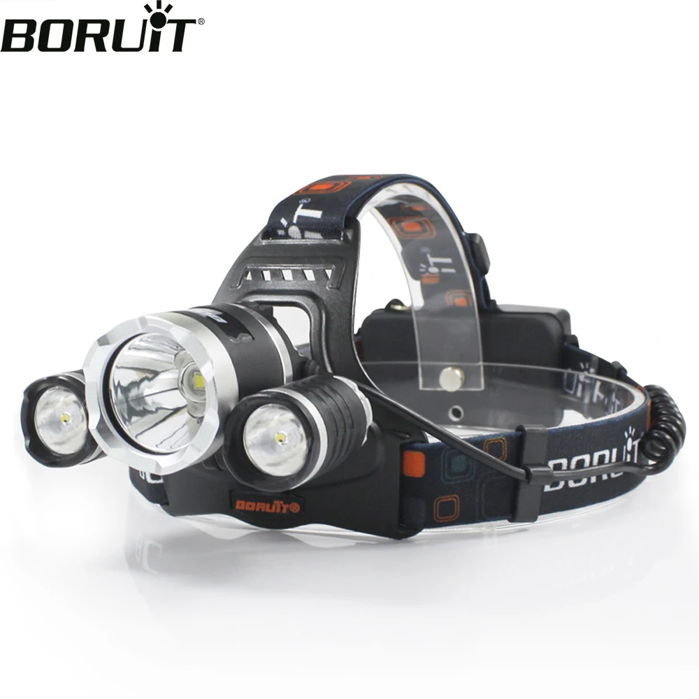 BORUiT RJ-5000 XM-L2 + 2 * R2 светодиодный налобный фонарь 4 режима Водонепроницаемый налобный фонарь перезаряжаемый Powr Bank 18650 налобный фонарь для охоты кемпинга