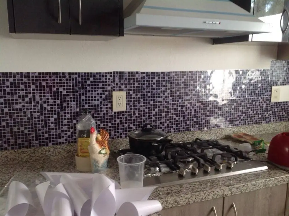 «Во время блокировки я решили повторно украсить свою кухню. Понравился цвет, но не мог себе позволить купить плитку, которую я хотел. Нашли эти наклейки плитки, потрясающая цена. Абсолютно люблю их! Они сделали мою кухню красивой. Нужно еще 4 упаковки, чтобы сделать другую сторону .. Прост в использовании. Настоятельно рекомендуется"