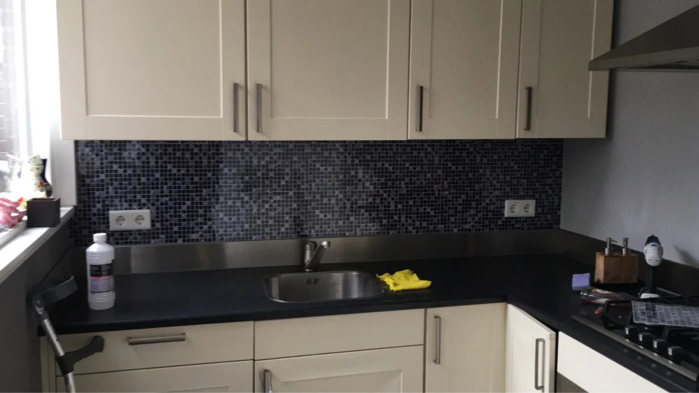 Этот продукт является прекрасным, если вы не хотите, чтобы они были очищены и прилипали плитку, вы не знаете, что они не реальны издалека, они выглядят действительно. В инслелл ушло два дня, так как мой муж был один и много обрезал наши шкафы на кухне. Мы действительно удовлетворены продуктом.