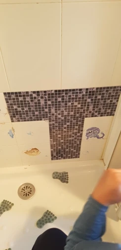 Установила на некоторое время. До сих пор не распустилась. Легко Резать и устанавливать. Это отличный способ изменить внешний вид нашей ванной комнаты. Предварительно измерил все, и мы использовали каждую часть того, что купили. Он не будет биться за качество и долговечность реальных, профессионально установленных задних брызг, но это будет делать для косметики. Определенно хороший