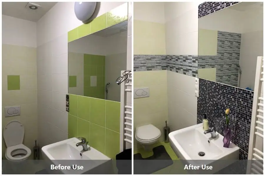 Потребовал немного, чтобы использовать для нанесения, но стоит своих усилий. Как вы можете видеть на фотографиях, я использовал это в своей ванной, и мне просто нравится внешний вид. Обязательно буду использовать этот продукт снова.