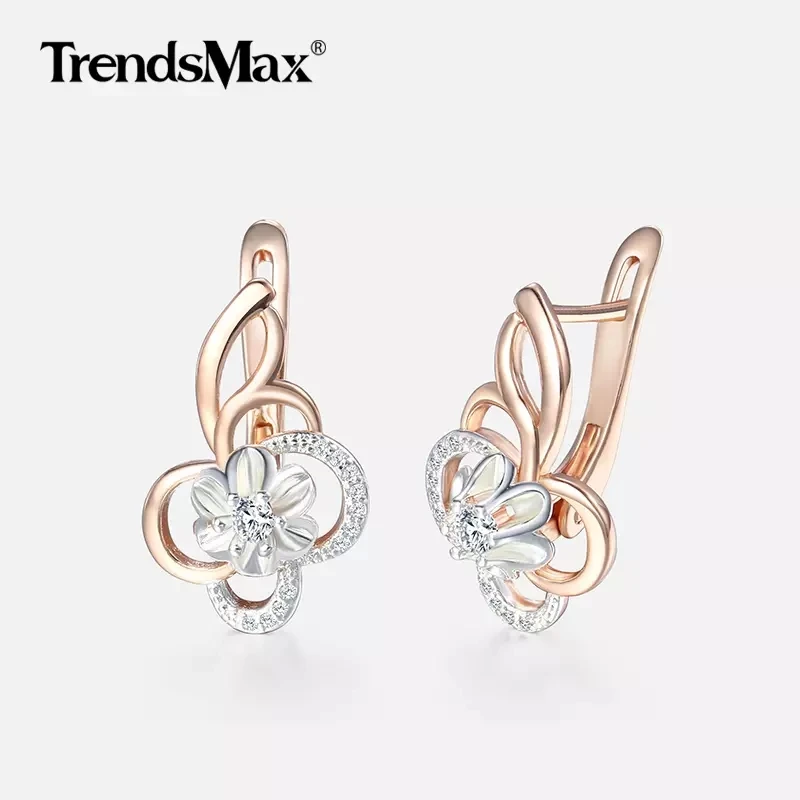 Цветочные серьги для женщин, 585 позолоченные серьги с кубическим цирконием, Обручальные, свадебные, женские украшения, подарки на день Святого Валентина KGE131