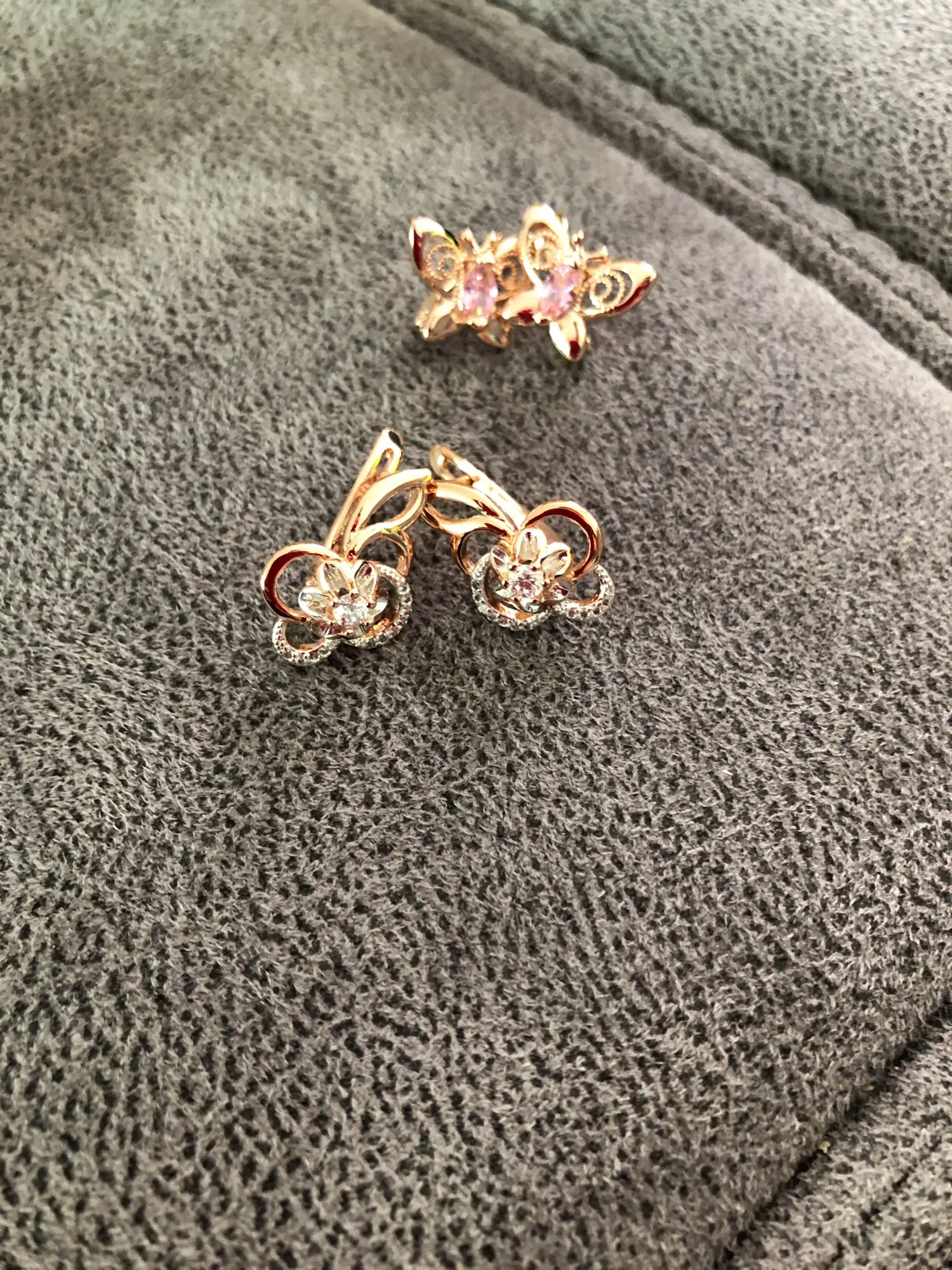 Очень красивые серьги и похожи на золотые. Доставка 17 дней. Рекомендую к покупке.