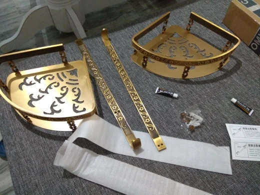 Полка добротная, не хлипкая. Смотрится очень мило. Пока не установили. В комплекте два маленьких тюбичка клея, но думаю всё-таки как-нибудь на саморезы повесить для большей надёжности. Доставка из России недели за две. Пока довольна!