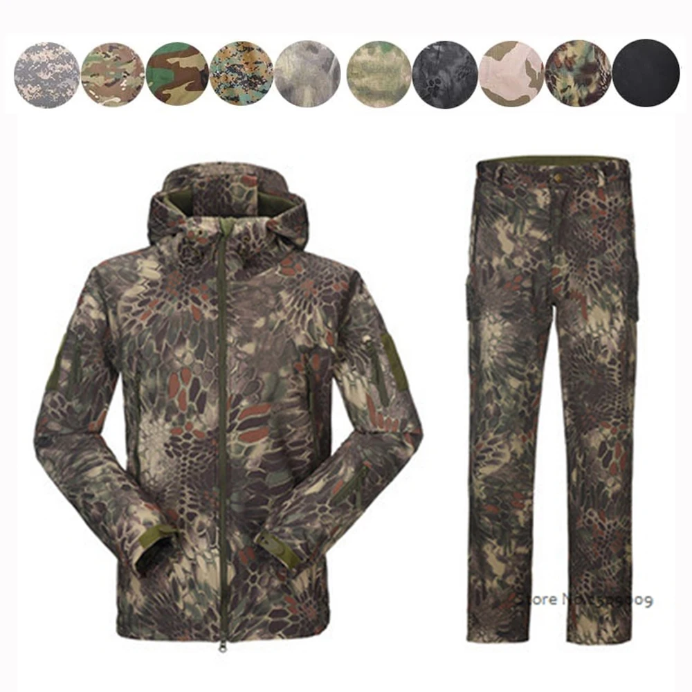 Мужская тактическая камуфляжная куртка из водонепроницаемой кожи акулы, куртка или штаны на осень-зиму, военная армейская одежда
