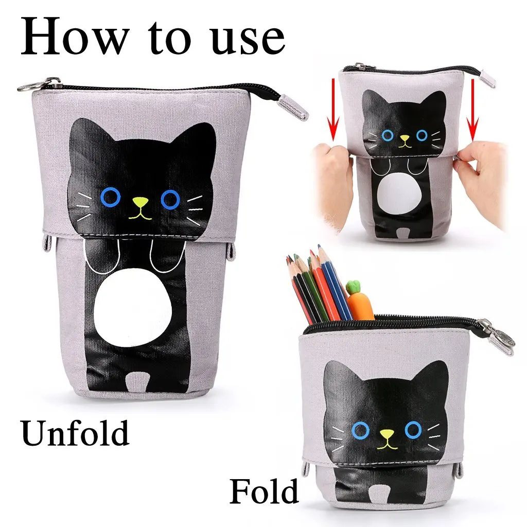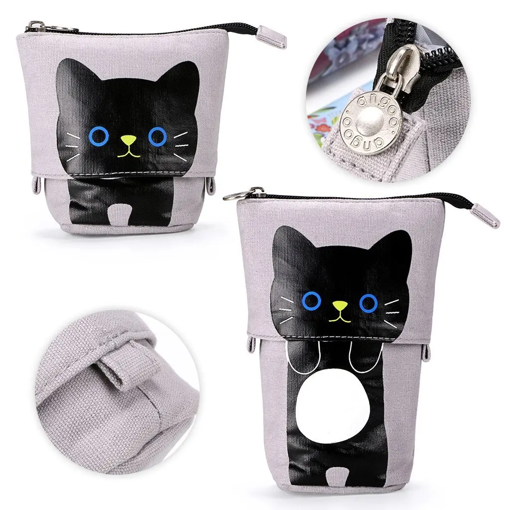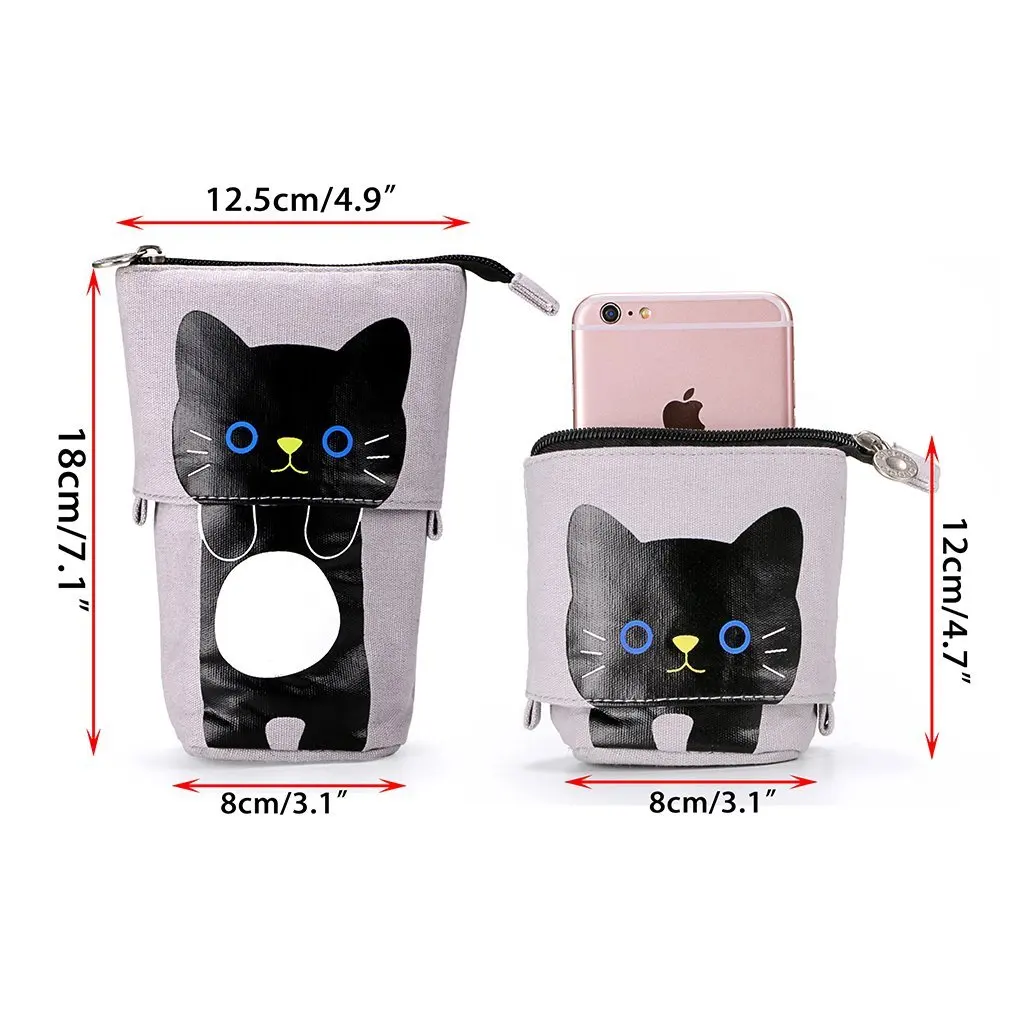 Холщовая Телескопическая Подставка с милым мультяшным котом, канцелярская сумка, чехол для карандашей, чехол, косметички, сумка для хранения для мальчиков и девочек-30