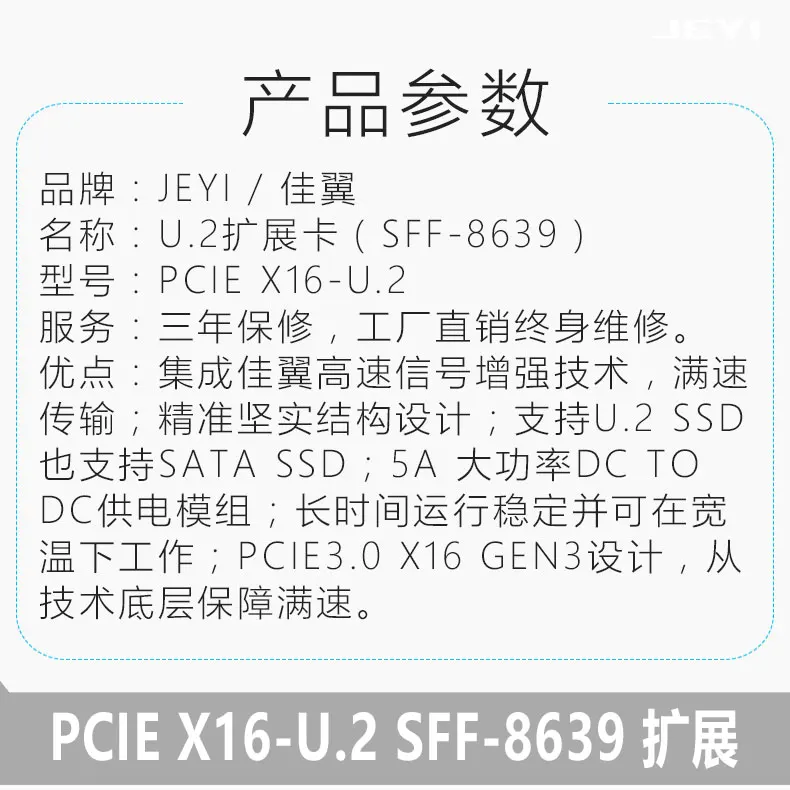 Адаптер JEYI U2PCB + U2X16 U.2, PCIe U2 2,5-дюймовый SSD PCI-E X4 X16 intel PCIe3.0 PCI-Express, карта B-Key AHCI с двойным питанием, для подключения к ПК и к работе с разъемами питания
