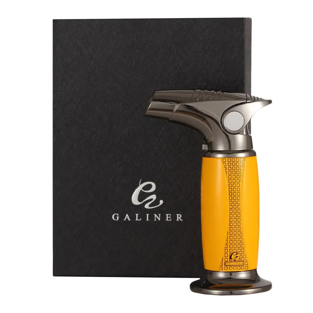 Роскошная настольная Зажигалка GALINER, ветрозащитная Бутановая струйная газовая зажигалка с красным пламенем, огненная Зажигалка для сигар с подарочной коробкой для курения сигар