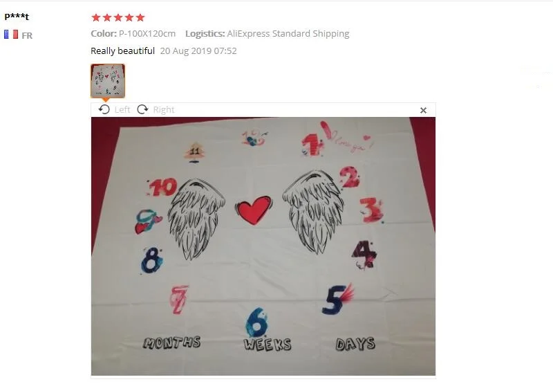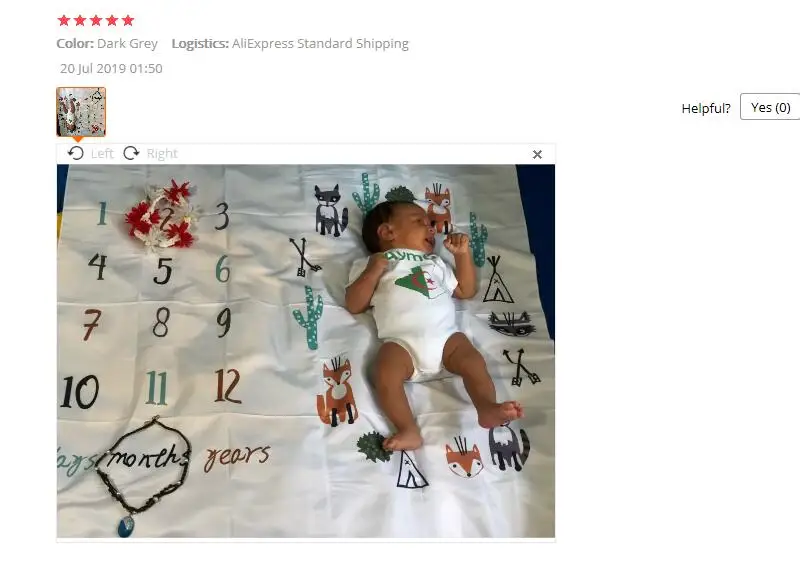 Заказ был сделан 11.11 а получили уже 23.11 - доставка супер быстрая)))) Сама пеленка соответствует описанию, цвета яркие, изображения четкие. Единственный дефект: по нижним углам немножко запачкана краской, не критично. Для фотосессии раз в месяц самое оно)) Продавца рекомендую.