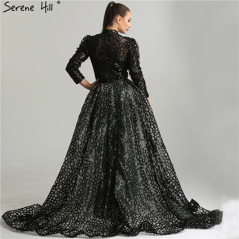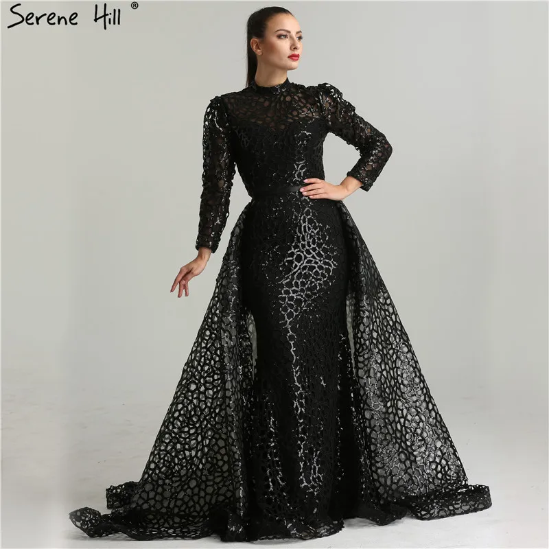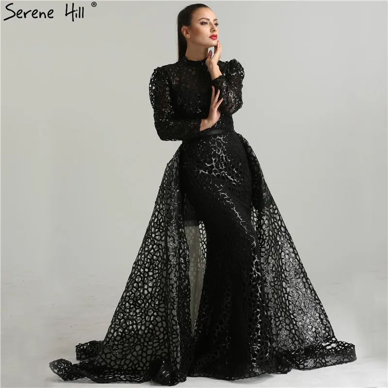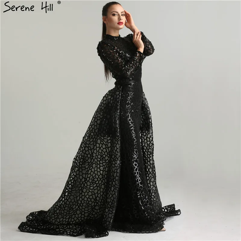 2020 новые черные вечерние платья с высоким воротом и длинным рукавом со съемным шлейфом, специальная ткань, платье русалки, арабское платье, BLA6409