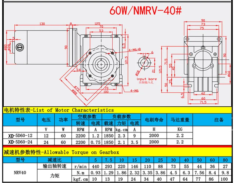 60 Вт 0,1 ОБ/мин до 1,5 об/мин RV40 DC червь Шестерни редуктор мотора 12v 24v DC 2-ступенчатый Шестерни мотор NMRV40 с самофиксирующаяся функция вращение по часовой стрелке и противМодель:5D60GN-RV40-2