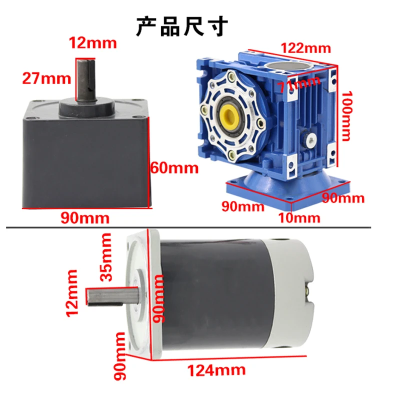 200 Вт RV40 червячный редуктор, двигатель постоянного тока 12 В 24 ...