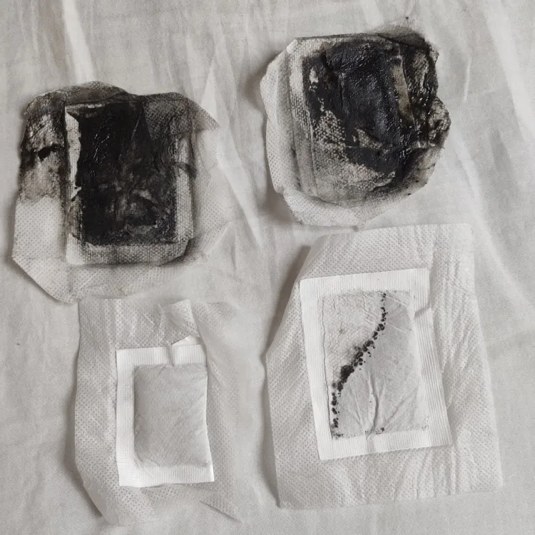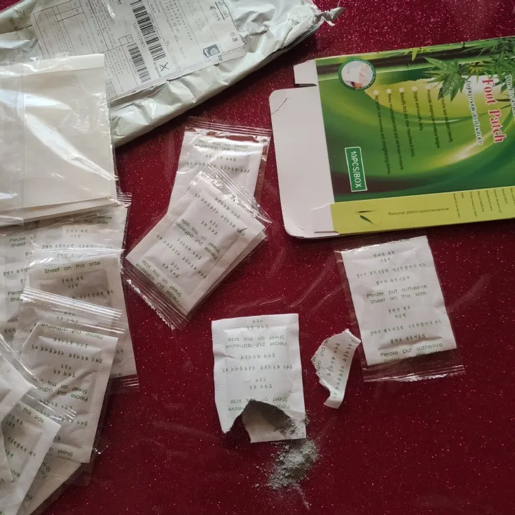 Пришло не в коробках.На стопах уголь чернеет,на теле нет. Видимо от пота. По отзывам разных магазинах ни у кого не перестали чернеть.Пластырь слабый,нужно носки надевать,если часов 10,то вытекает черная,липкая жижа. Из-за обмана с количеством закажем у других и много,хочется увидеть,что всё-таки чернота светлеет.