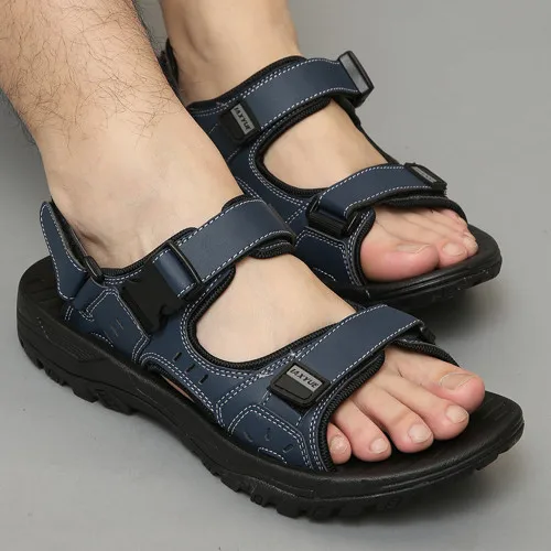 Мужские сандалии из натуральной кожи, Босоножки с открытым носком, Нескользящие, пляжная обувь, большие размеры, лето