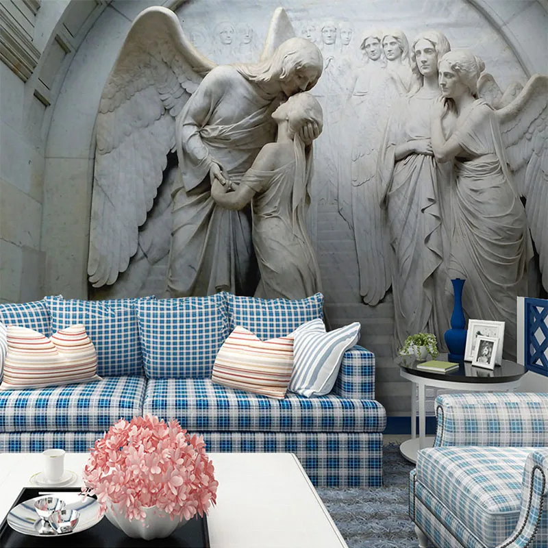 Пользовательские фотообои 3D рельефная скульптура ангела Фреска гостиная телевизор диван спальня Европейский стиль обои для стены 3 D Фреска
